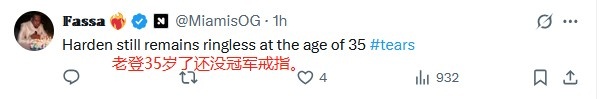 网友议抢7沉船:哈登是最没谱的超巨&35岁还没戒指 他又要溜了?