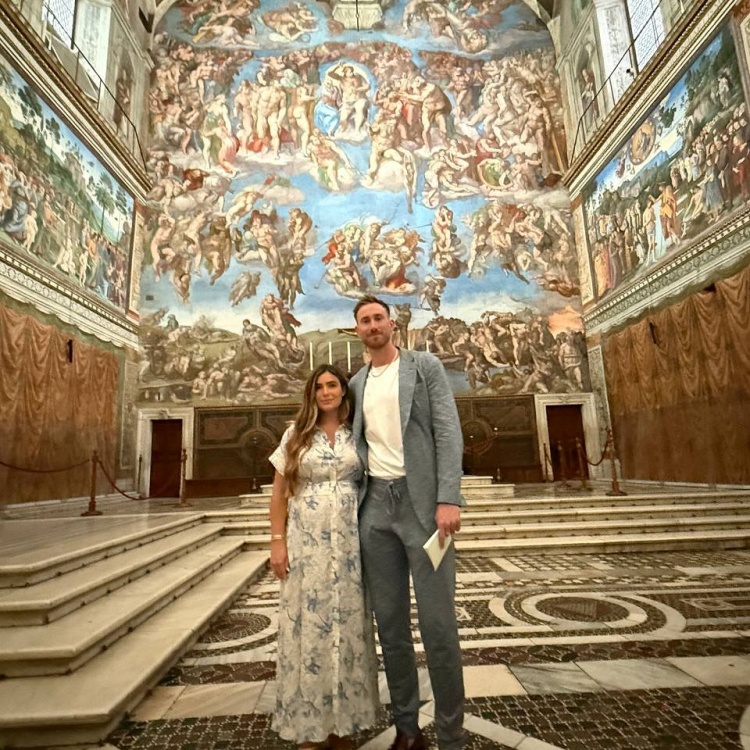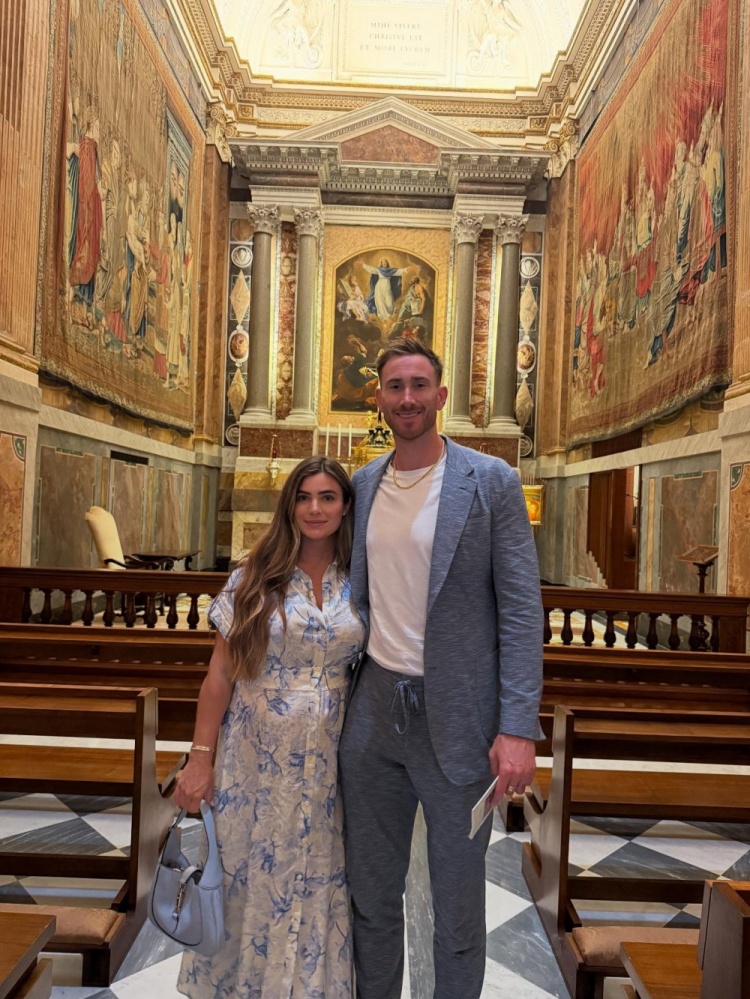 奥博直播6月21日讯 海沃德晒出了和妻子在梵蒂冈参观的照片,并写到:“难以置信的意大利和梵蒂冈之旅,参加禧年庆典和体育活动!能见到教皇陛下,实在是莫大的荣幸!还在教宗选举结束后的短短几个月内参观了西斯廷教堂!太震撼了!感谢上帝的恩典!”