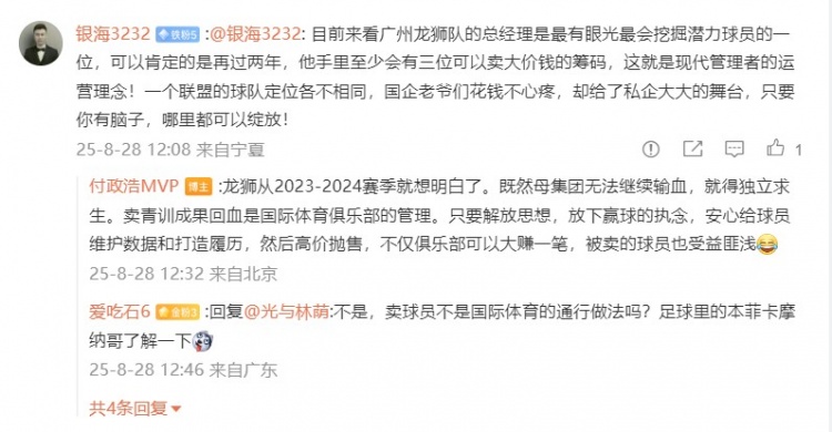 媒体人:广州23-24赛季就想明白了 卖青训成果球队赚钱球员也受益